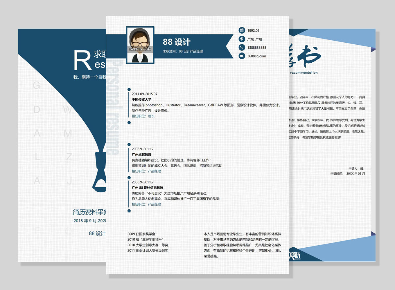 产品设计经理word简历,平面设计word模板.三页模板通用型12
