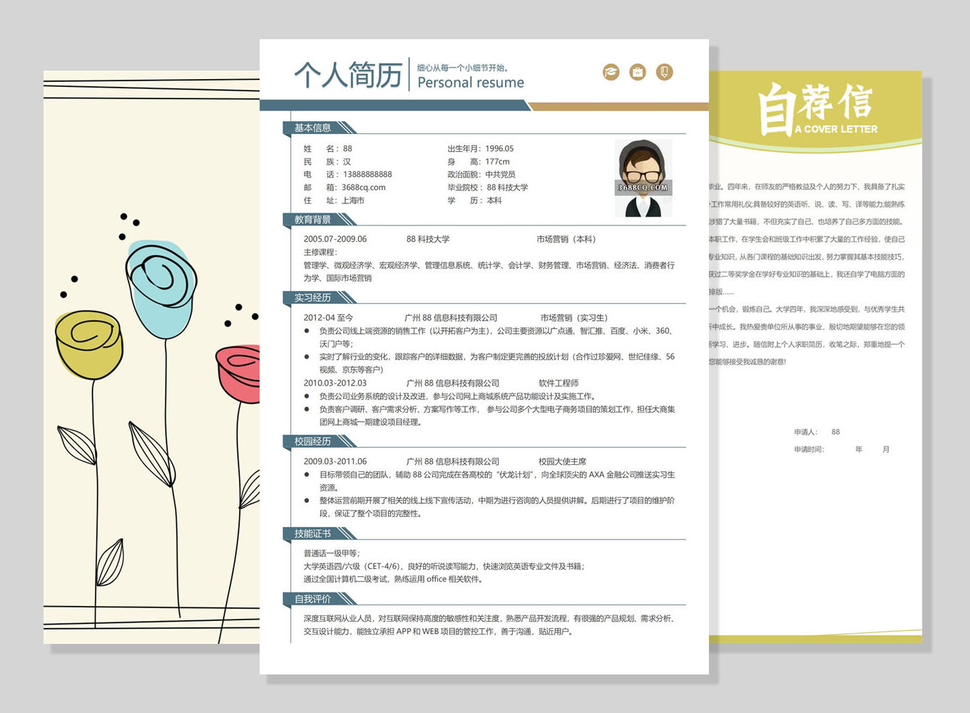 市场专员word简历,市场营销word模板.三页模板通用型22市场专员word简历,市场营销word模板.三页模板通用型22
