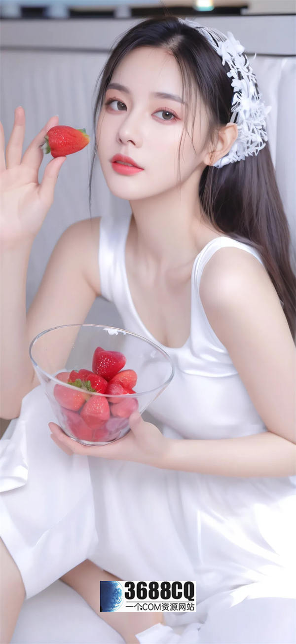 吃草莓美女手机壁纸