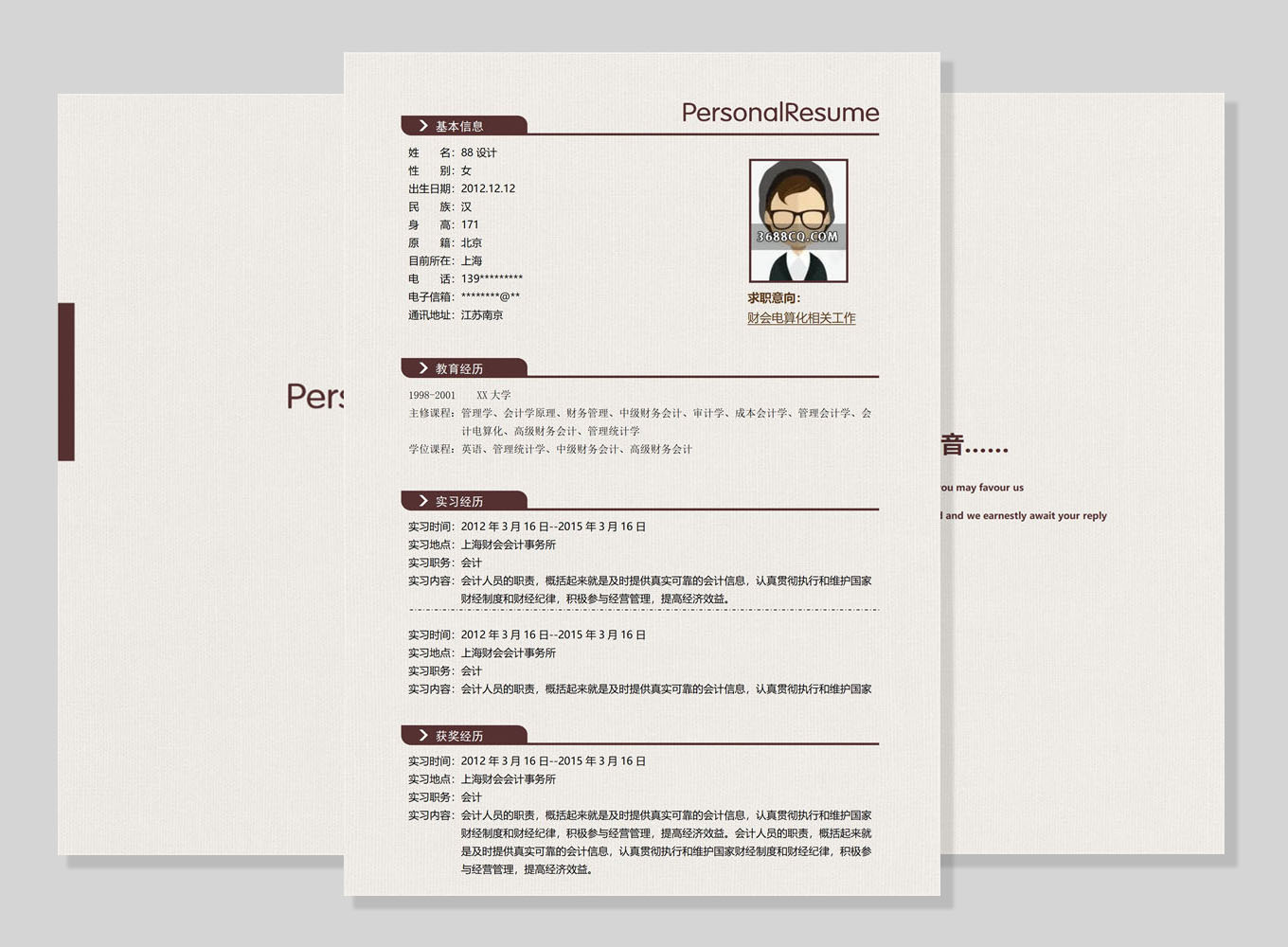 会计word简历,审计通用型word模板-水墨古风四页4