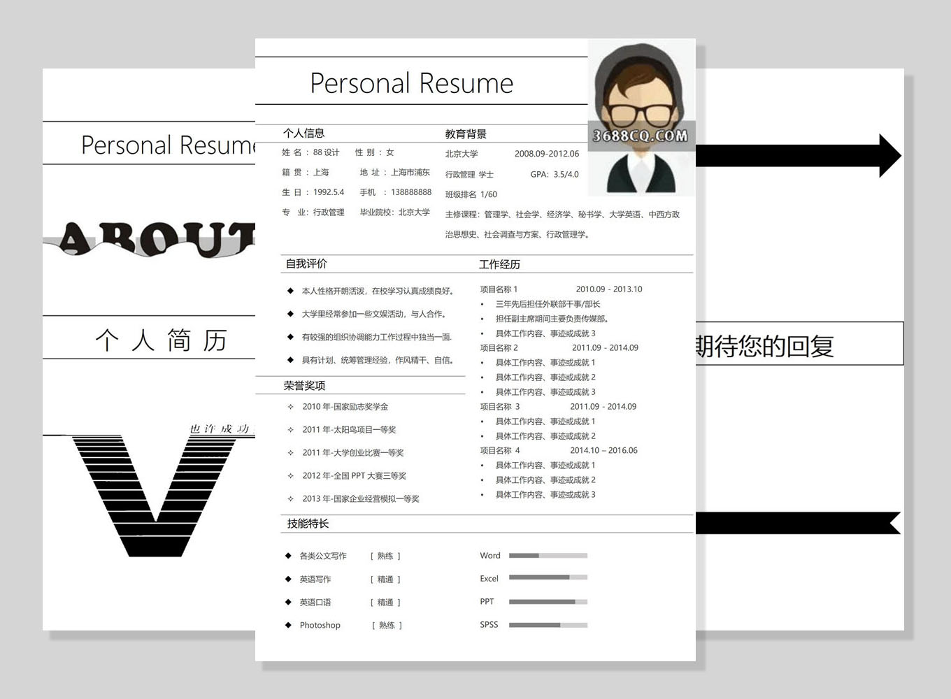 行政管理word简历,行政word模板-高端四页4