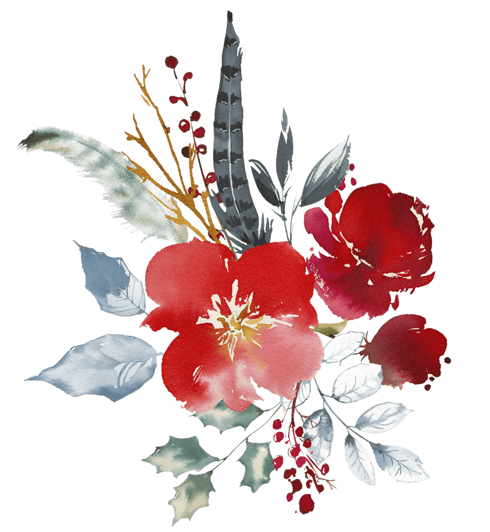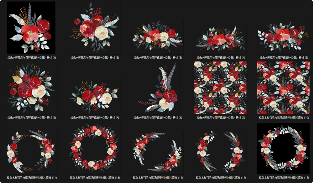 红色水彩花朵花环PNG免抠素材