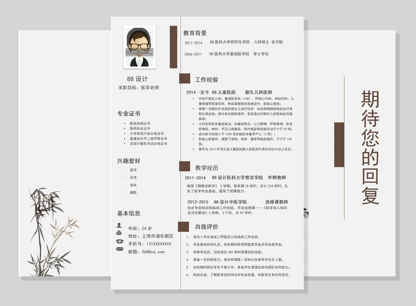 散了吧资源网 个人简历word模板 医生word简历,儿童医生word模板-高端四页46 https://www.444zy.com/1748.html