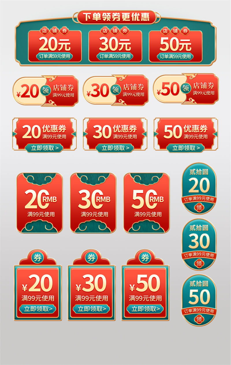 红色绿色风格电商促销标签