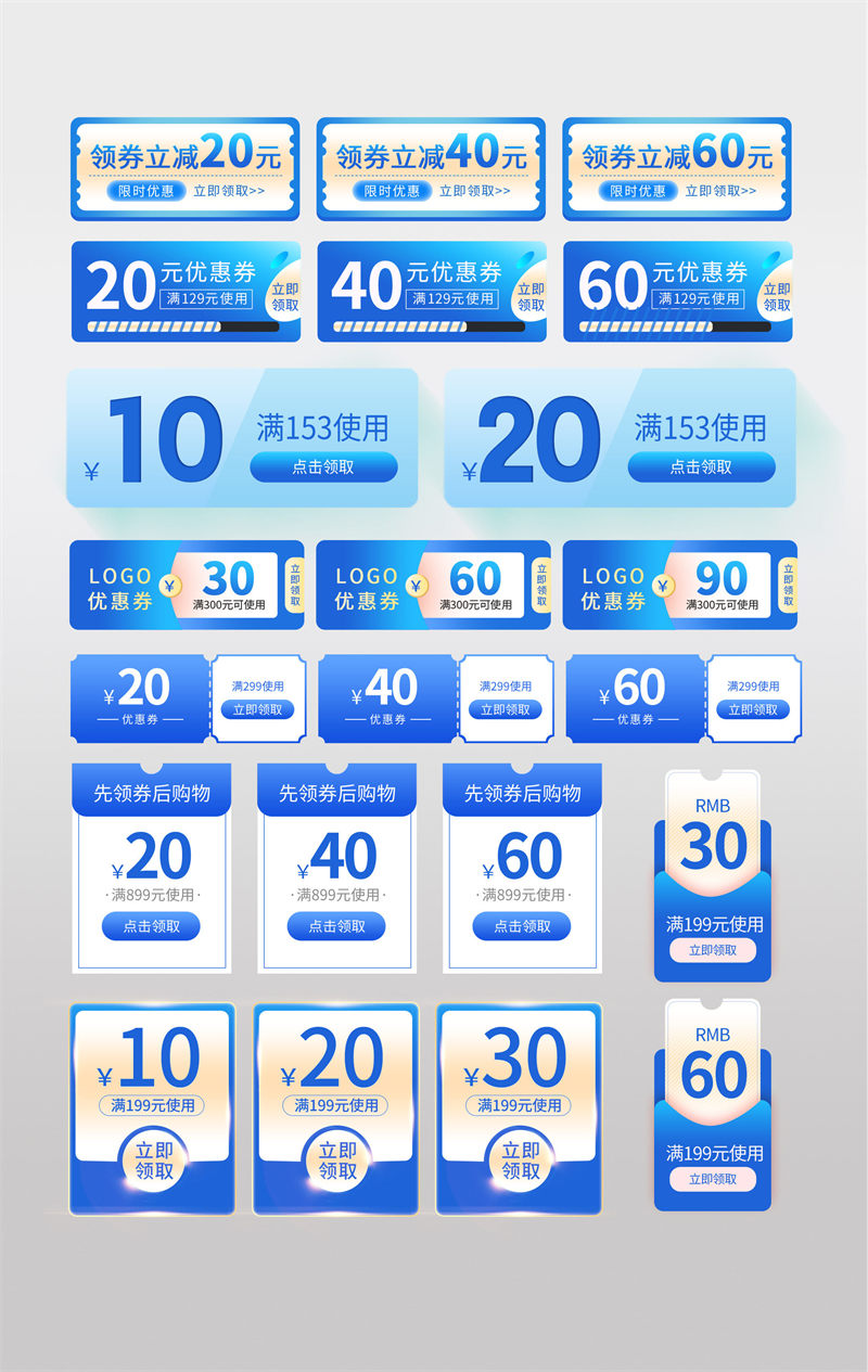 蓝色风格电商促销标签