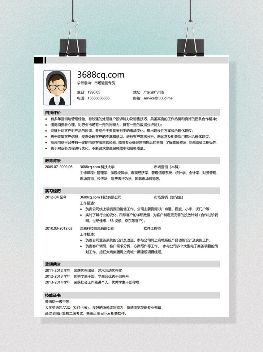 散了吧资源网 个人简历word模板 市场专员word简历,市场运营专员应聘简历 https://www.444zy.com/246.html