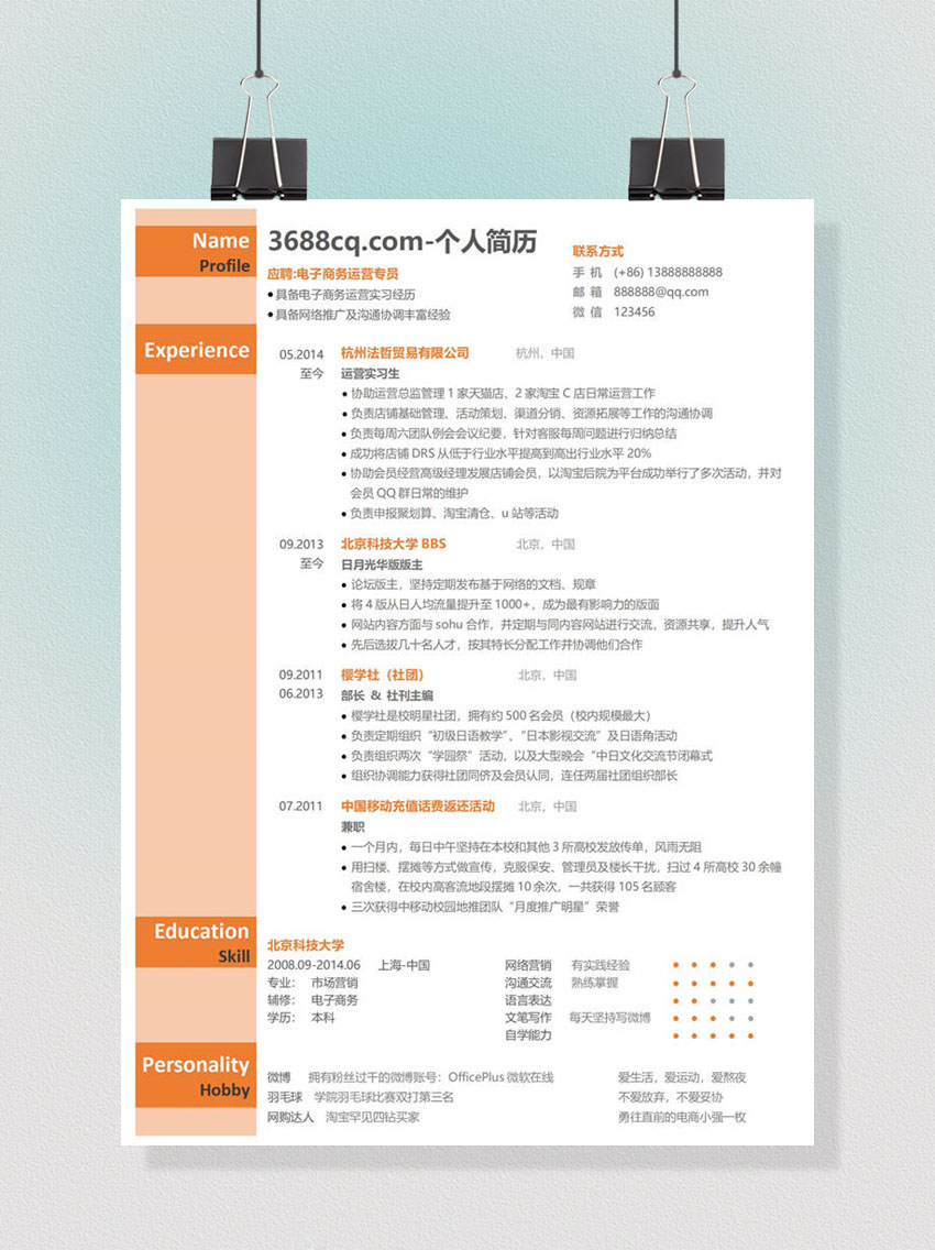 散了吧资源网 个人简历word模板 电子商务运营专员word简历,电子商务运营专员word模板 https://www.444zy.com/271.html