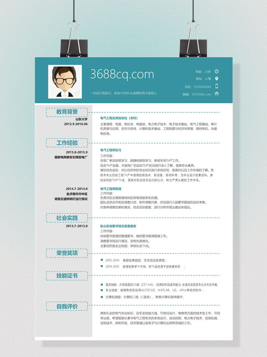 电气工程师word简历,电气工程师word模板