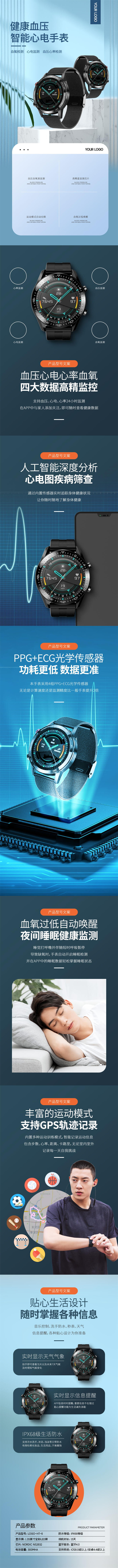 智能手表电商详情图,手表淘宝详情页,智能心电手表拼多多详情页素材,运动手表京东详情图