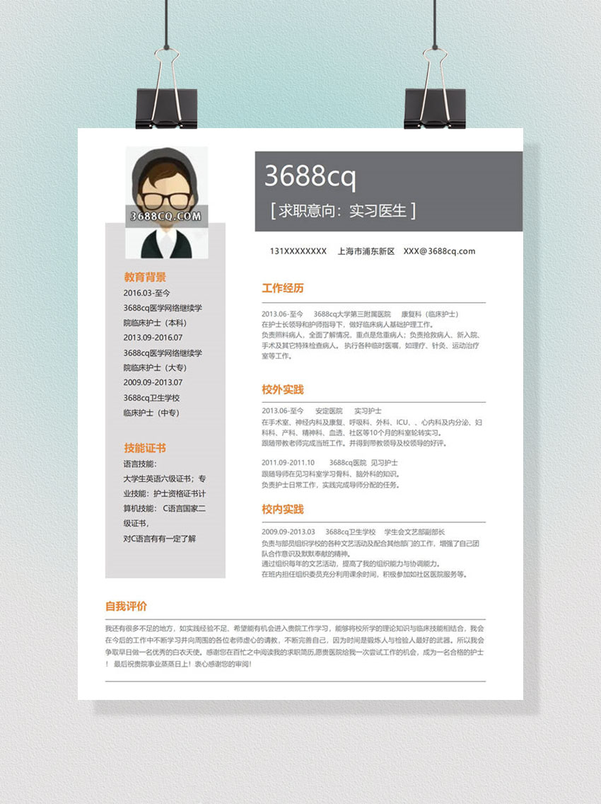 实习医生word简历,医生word模板