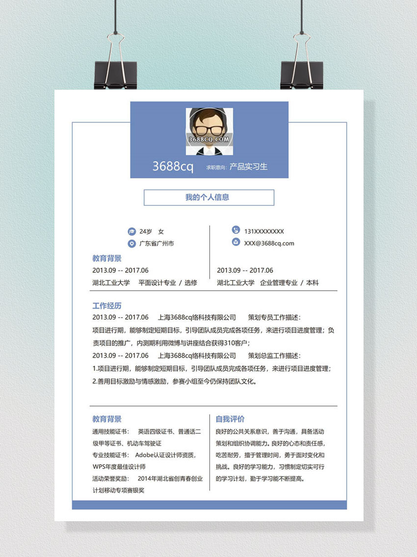 产品经理word简历,产品实习生word模板