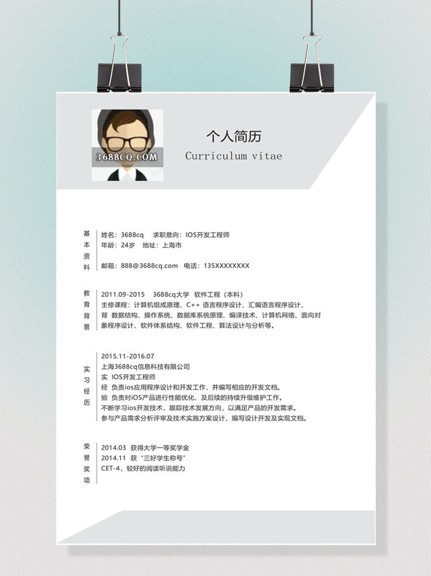 IOS开发工程师word简历,软件开发工程师word模板