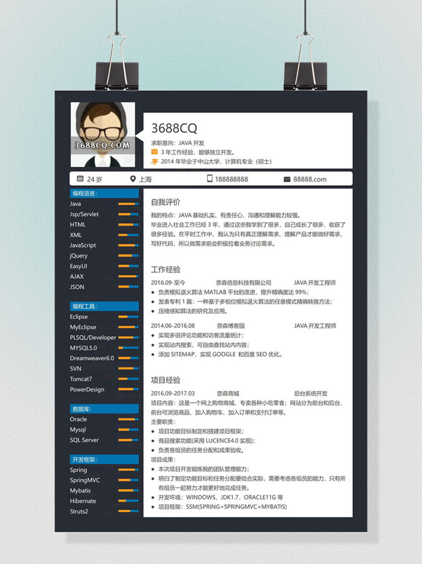 JAVA开发word简历,软件开发word模板,软件工程师