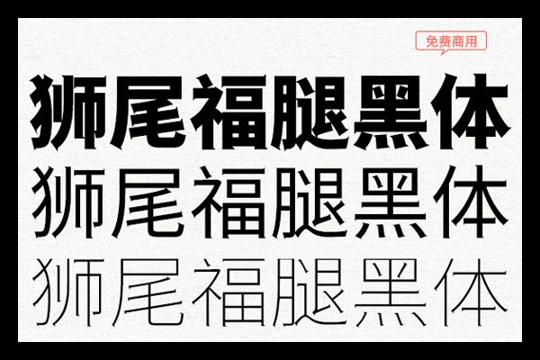 狮尾福腿黑体,基于思源黑体的笔触增加三角形改造,更加简明现代化的字体。支援简体中文、繁体中文、