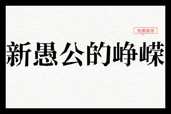 新愚公的峥嵘,基于思源宋体进行改造的一款字体。这款字体加入了随机的扭曲效果,让字体看去上有一种歪歪扭扭的视觉效果, 别有一番风味。字体出给人一种做旧复古的感觉,在某些特定的设计也是不错的。可自由使用此字体,也可以做商业应用。免费商用字体