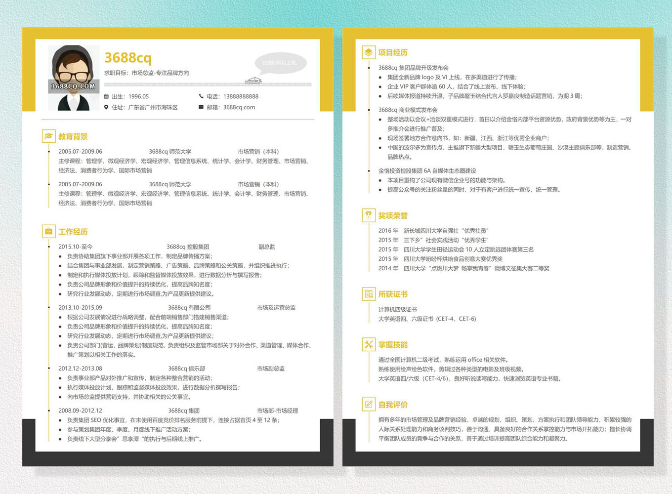 市场总监word简历,市场营销word模板.双页模板