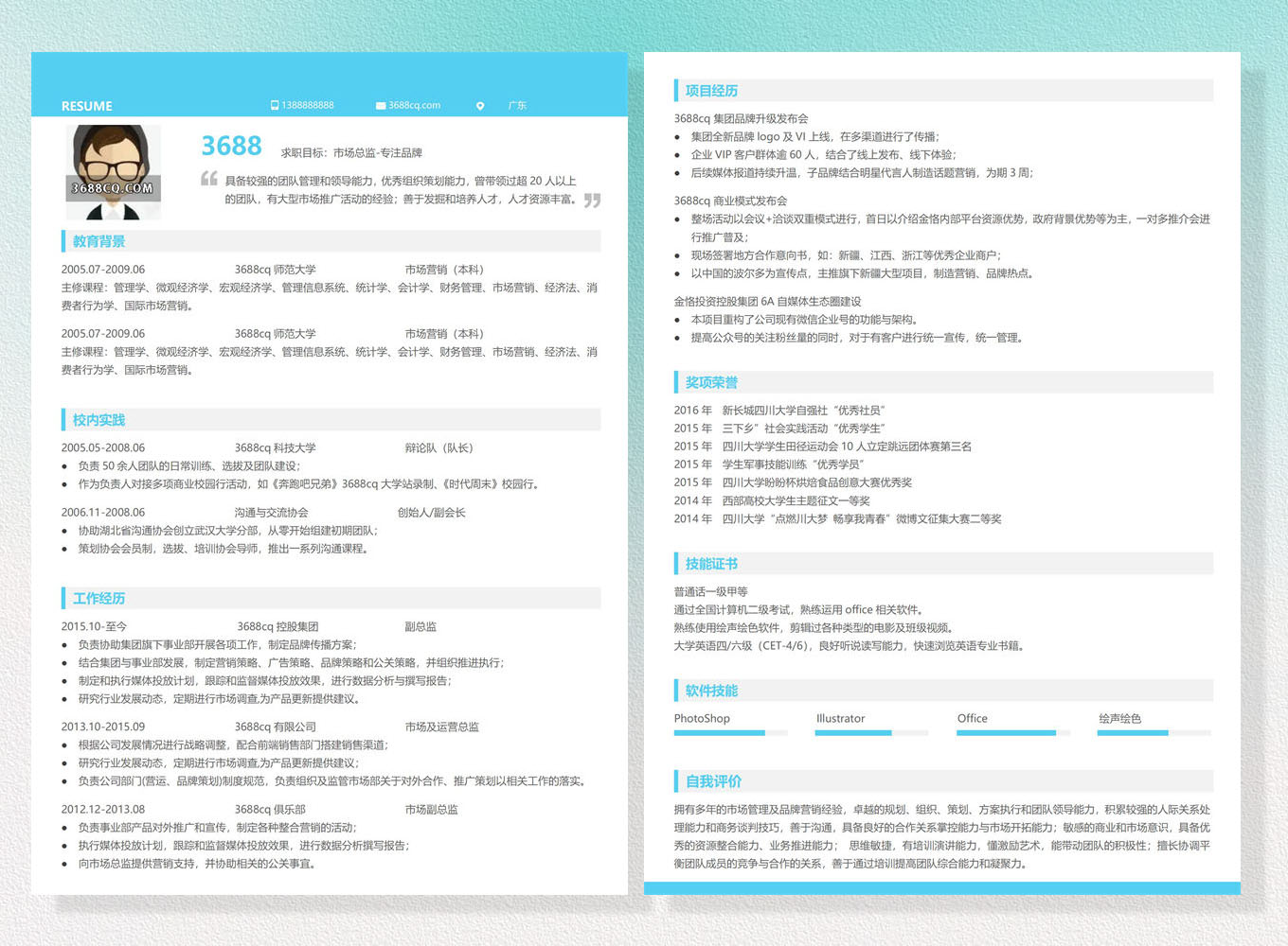市场总监word简历,市场营销word模板.双页模板通用型12