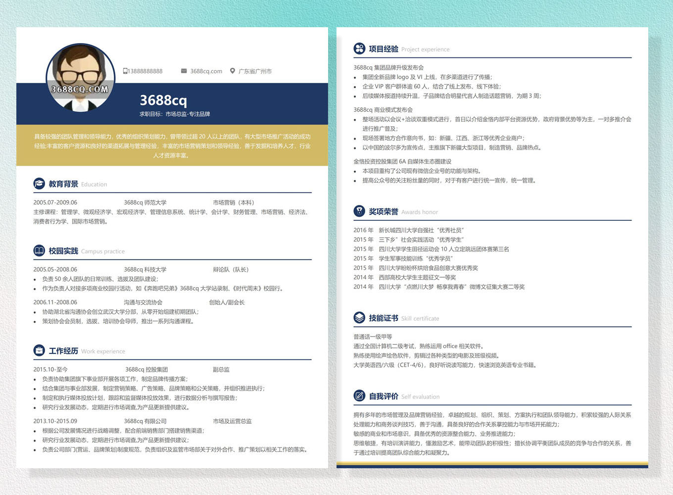 市场总监word简历,市场营销word模板.双页模板通用型16