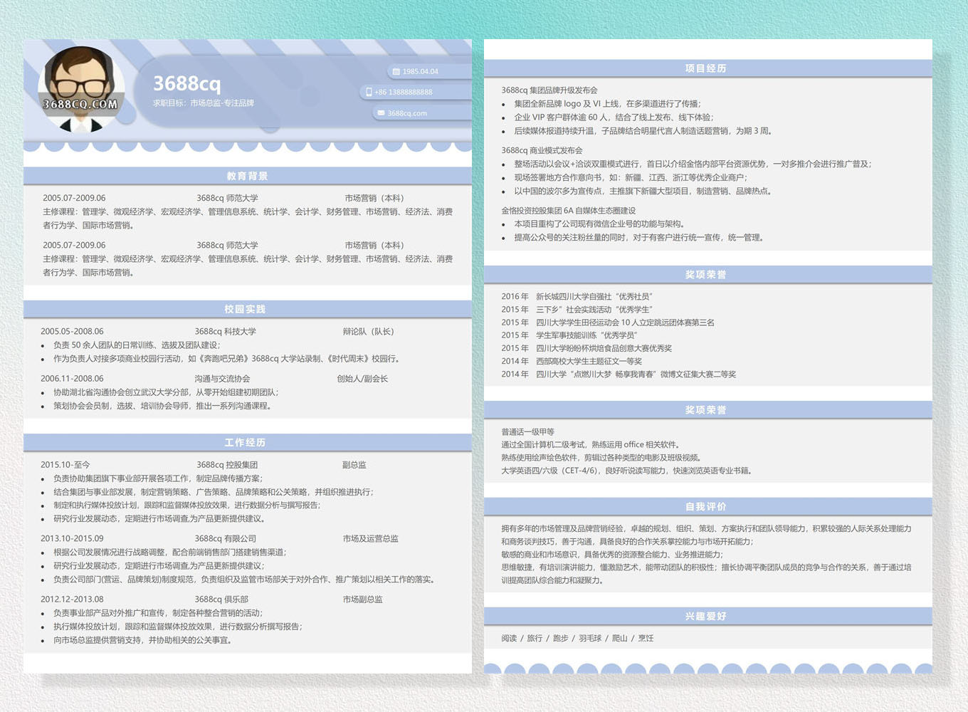 市场总监word简历,市场营销word模板.双页模板通用型17