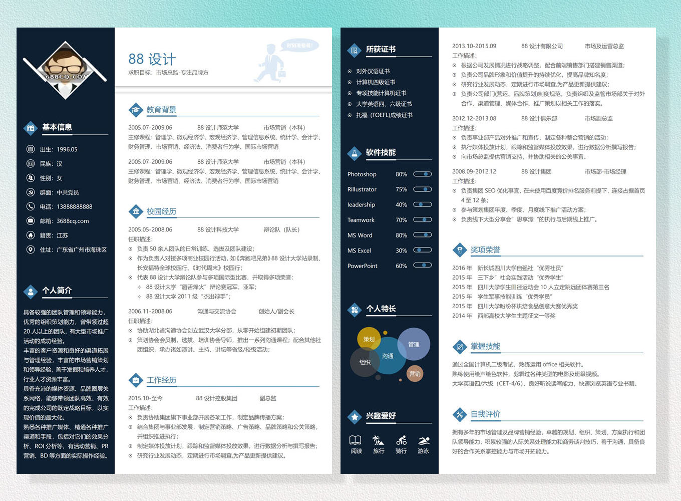 散了吧资源网 个人简历word模板 市场总监word简历,市场营销word模板.双页模板通用型23 https://www.444zy.com/870.html