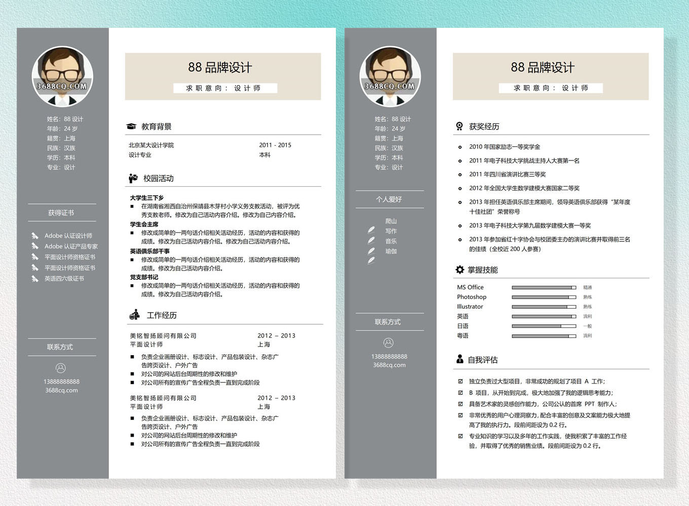 散了吧资源网 个人简历word模板 平面设计师word简历,平面设计word模板.双页模板通用型32 https://www.444zy.com/901.html